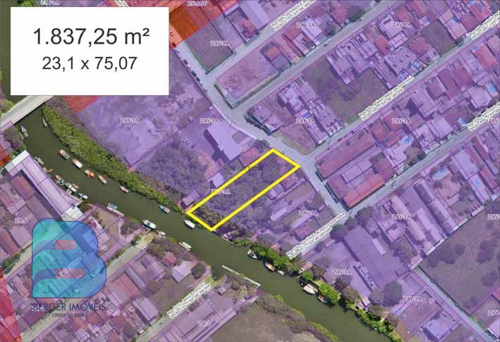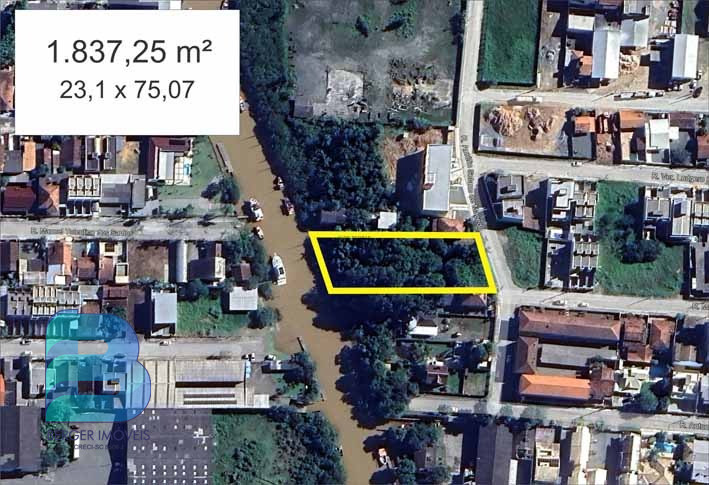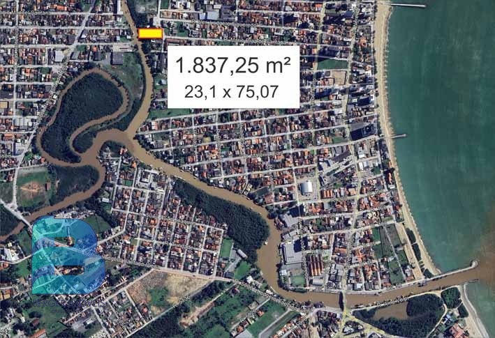 Terreno com fundos para o rio medindo 1.837,25m² e viabilidade para 14 andares.